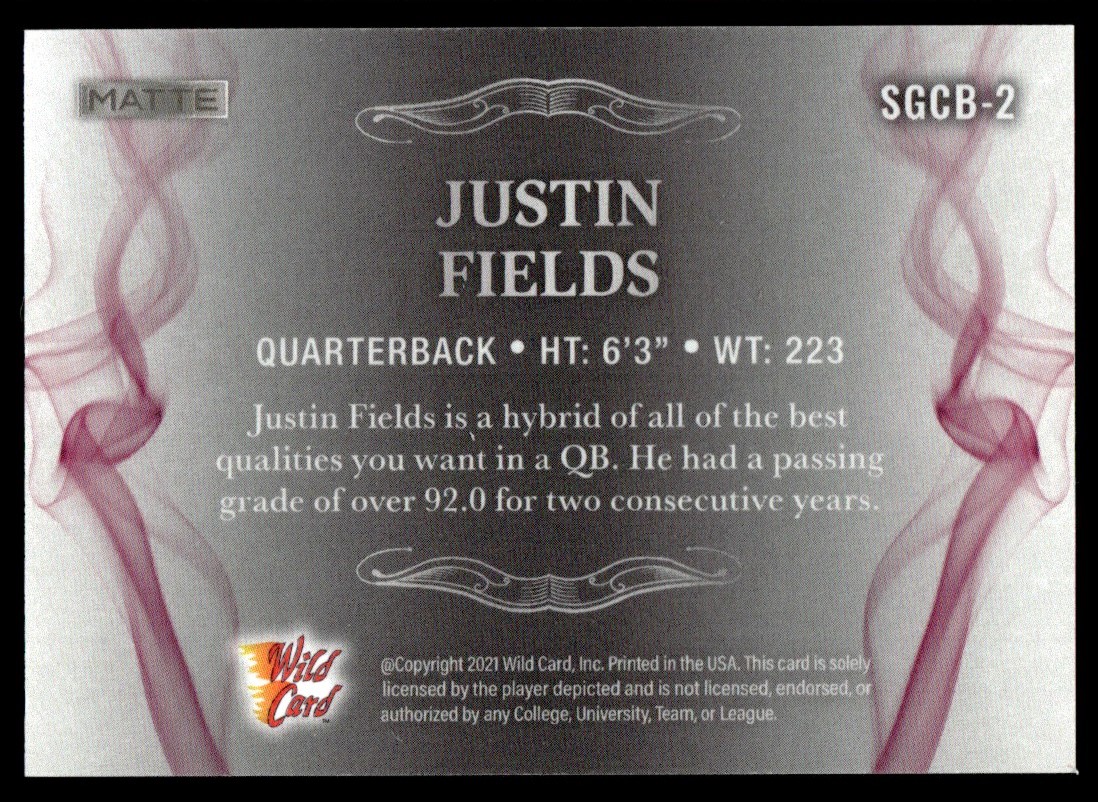 2021 Wild Card Matte Smoking Guns Justin Fields Rookie 9/20 Chicago Bears