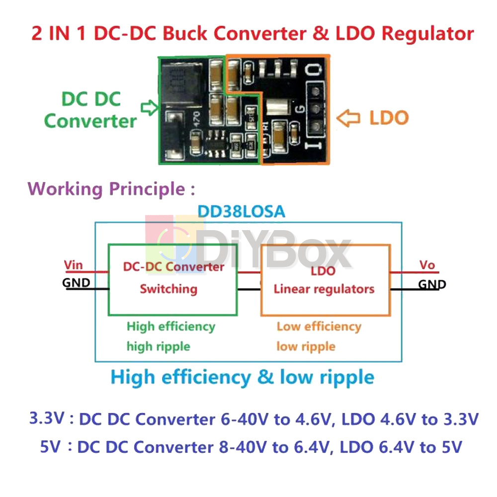 LDO Regulator 2-in-1 DC 6V 9V 12V 24V to 5V 3.3V DC-DC Step-down Buck Converter