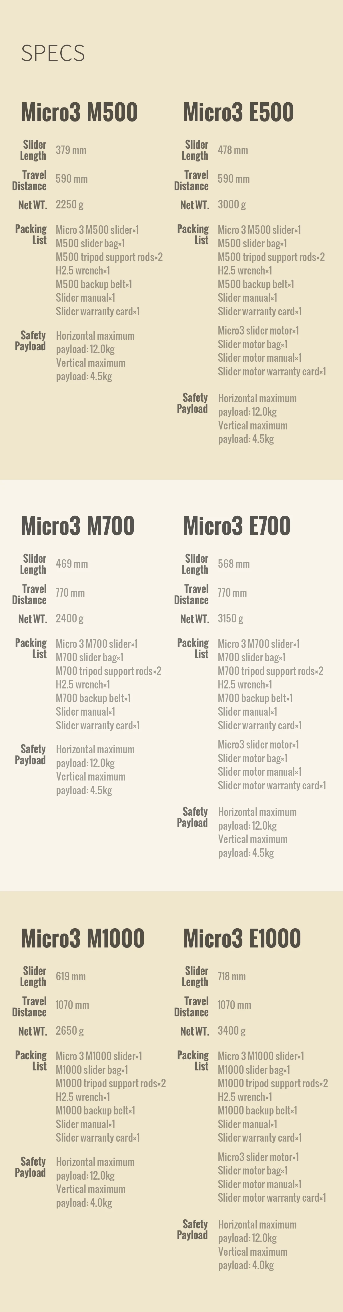 Micro 3 M700 slider×1 Micro3 slider motor×1 |