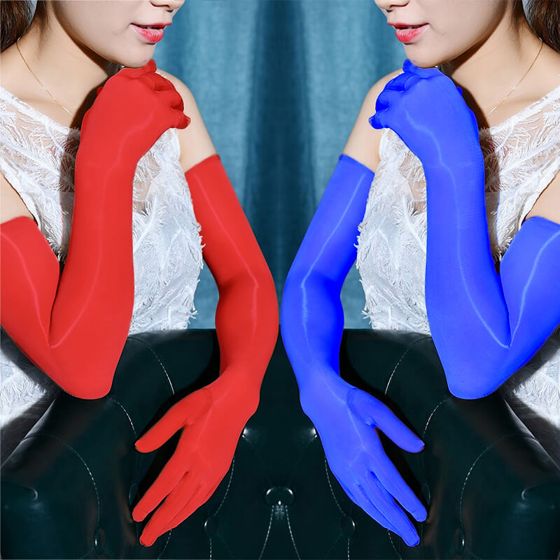 | | Women See-through Shiny Glossy Nylon Bridal Prom Party Costume Long Opera Gloves | |  |