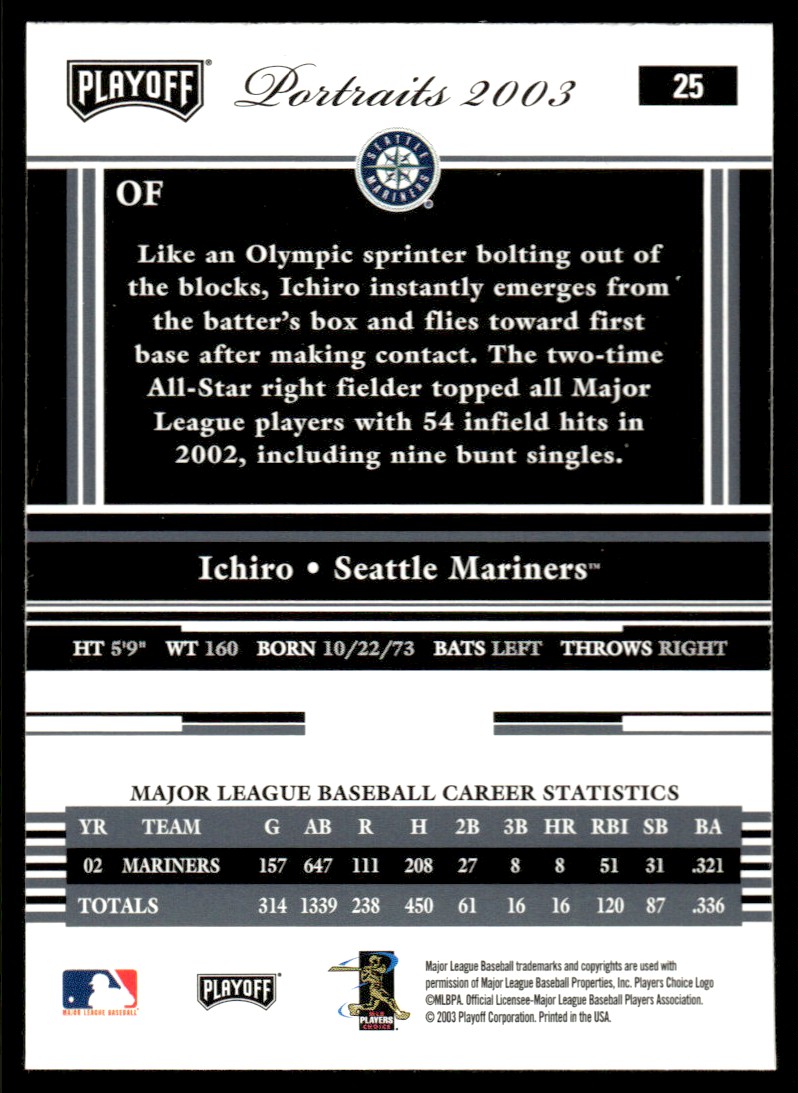 | 2003 Playoff Portraits Baseball Ichiro Suzuki Seattle Mariners #25 NM |