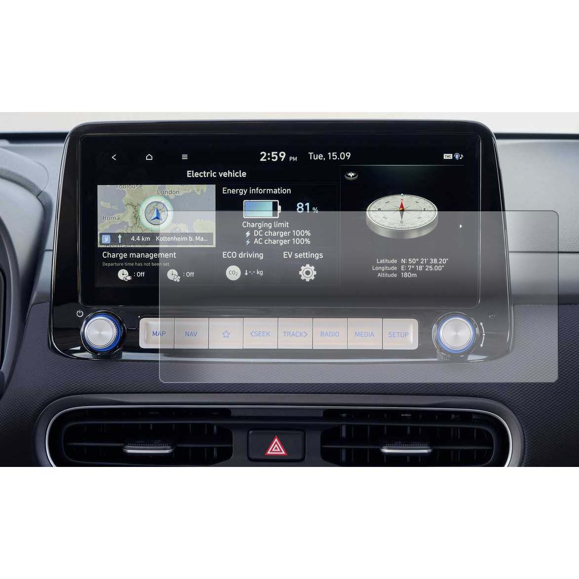 Schutzfolie passend für den Touchscreen deines Hyundai Kona Elektro.