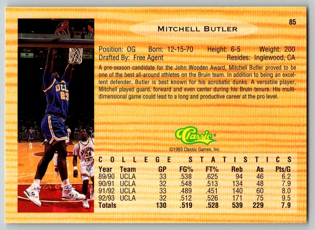 1993-94 CLASSICS DRAFT PICKS MITCHELL BUTLER UCLA BRUINS #85