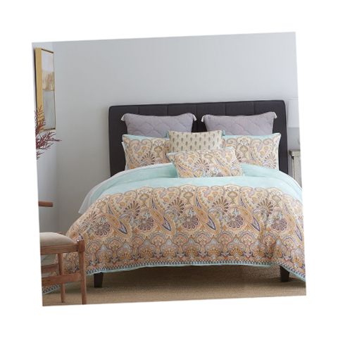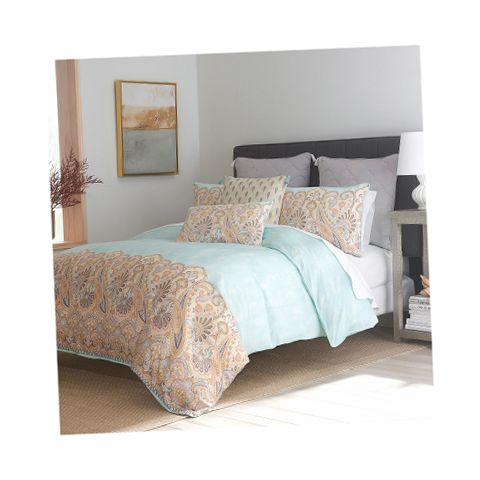 Inspired by a coastal city in eastern india, the puri design features a beachy paisley motif at the foot of the comforter that graduates up to a solid turquoise color, reminiscent of the bay of bengal waterfront. Made using 100% cotton filled with polyester, this comforter set is exceptionally soft for the ultimate comfort you deserve. In addition, two shams with hidden zipper closures allow you to choose between the paisley print or turquoise textured background.