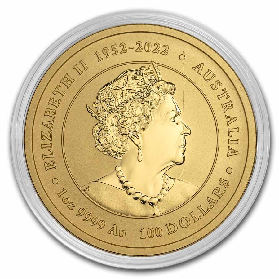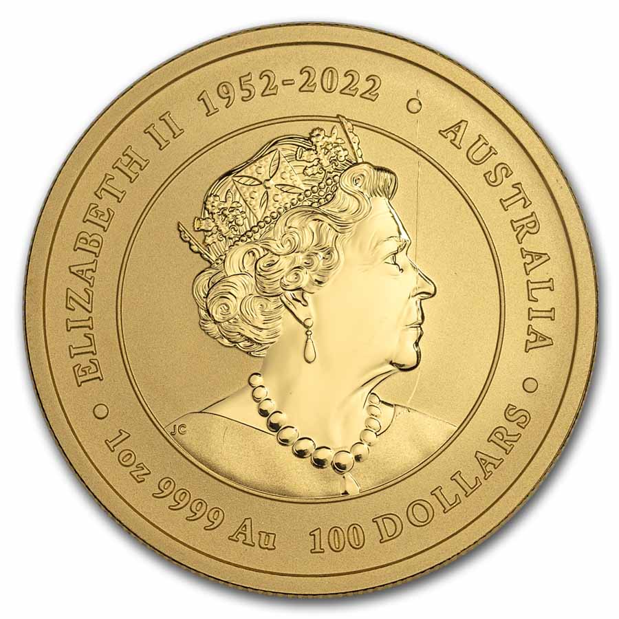 - Obverse: The Jody Clark effigy of Her Late Majesty Queen Elizabeth II, her years of reign: 1952-2022, the weight and fineness, and the monetary denomination.