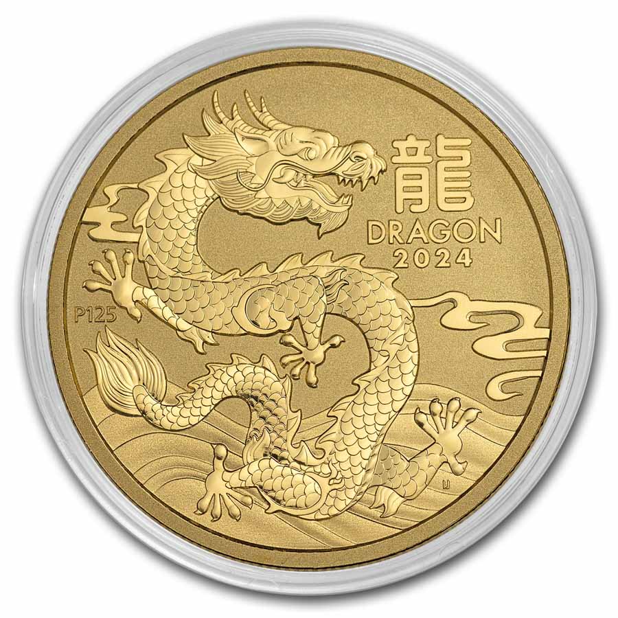 Lunar Year of the DragonPerth Mint's Australian Lunar Series III collection continues the rich tradition of minting spectacular bullion coins by portraying animal themes from the Chinese lunar calendar. The reverse design changes each year based on the Chinese lunar calendar, and the 2024 reverse celebrates the Year of the Dragon. Those born under the sign of the Chinese lunar dragon in 2024, 2012, 2000, 1988, 1976 and every 12