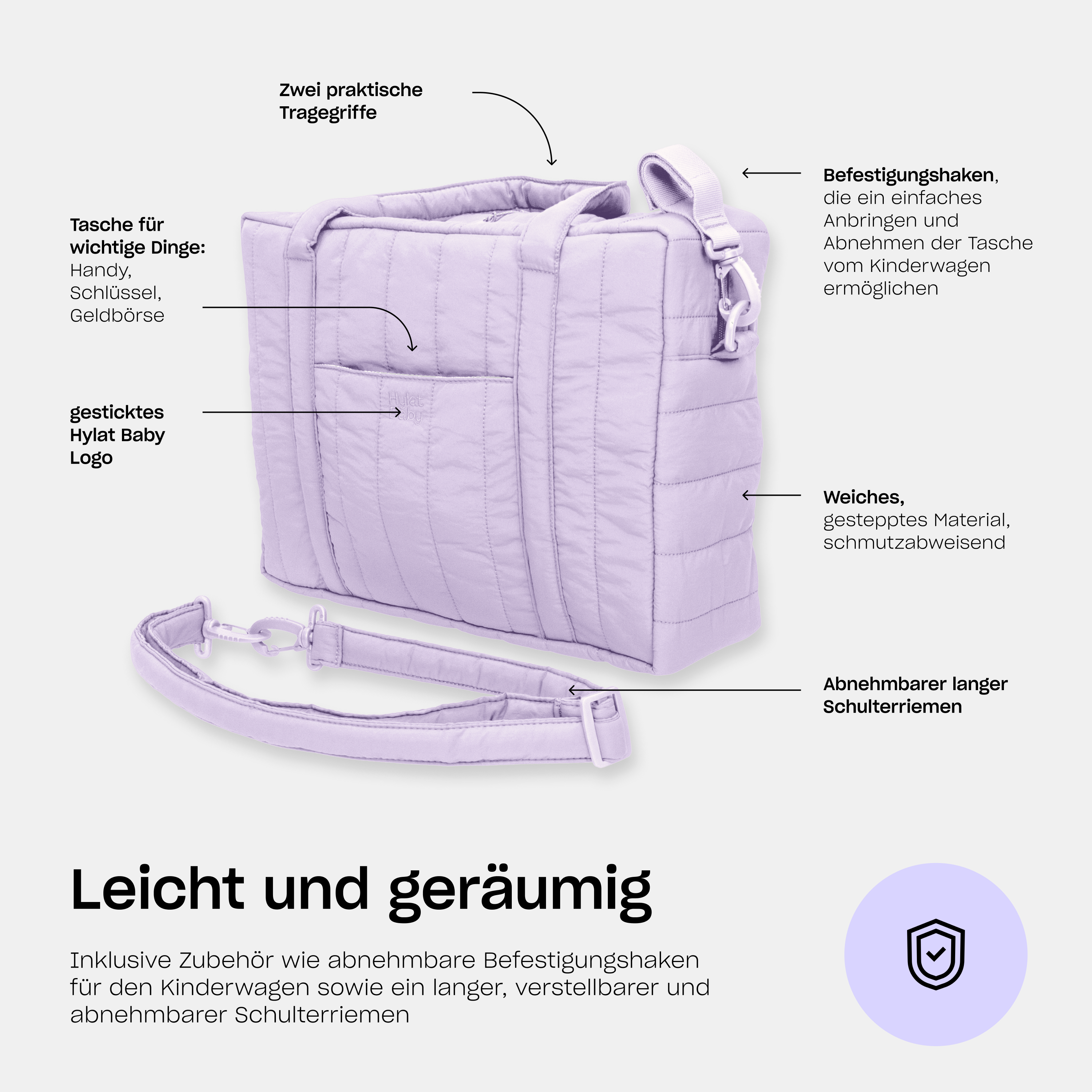 - Sie bietet Platz für Windeln, Babynahrung, Kleidung und Snacks und ist vielseitig einsetzbar – als Handtasche, Umhängetasche oder am Kinderwagen befestigt