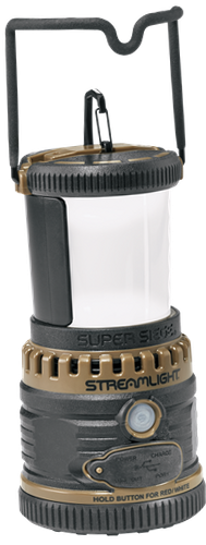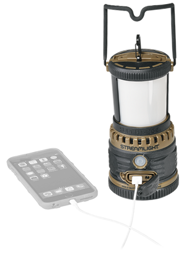 Keep your campsite illuminated and all of your USB-compatible devices fully charged with the bright and innovative Streamlight Super Siege Lantern. This brilliant, 1,100-lumen Streamlight lantern houses an impressive 8,800mAh rechargeable lithium-ion battery to charge your USB-rechargeable devices. A white C4 LED offers low, medium, high, and flashing SOS/emergency strobe modes. A battery-level indicator displays remaining battery life and flashes red when batteries approach full discharge. The built-in device charger can recharge compatible Streamlight devices up to 8 times, Streamlight ProTac HL USBand or most smartphones up to 4 times and most tablets up to 2 times. The USB ports have protective covers, while the recessed power button prevents accidental activation. The Streamlight Super Siege Lantern adds the acclaimed, removable Glare Guard that allows lighting in up-close tasks, as well as a removable polycarbonate cover for 360 illumination. The ultradurable polymer housing features a rubber-molded base to ensure stability on wet surfaces. IPX7 waterproof rating allows submersion to 1m for up to 30 minutesplus, the buoyant design lets this rechargeable lantern stay afloat in water. Impact-resistant to 2m. A watertight storage compartment in the base protects essentials. Includes locking ergonomic handle with incorporated hanging hook and easy-store D-rings on the top and bottom. Runs up to 5 hours on high, 35 hours on low, or 288 hours on red low, on built-in rechargeable battery. Mfrs. Height: 7.5". Weight with Batteries: 1.91 lbs.