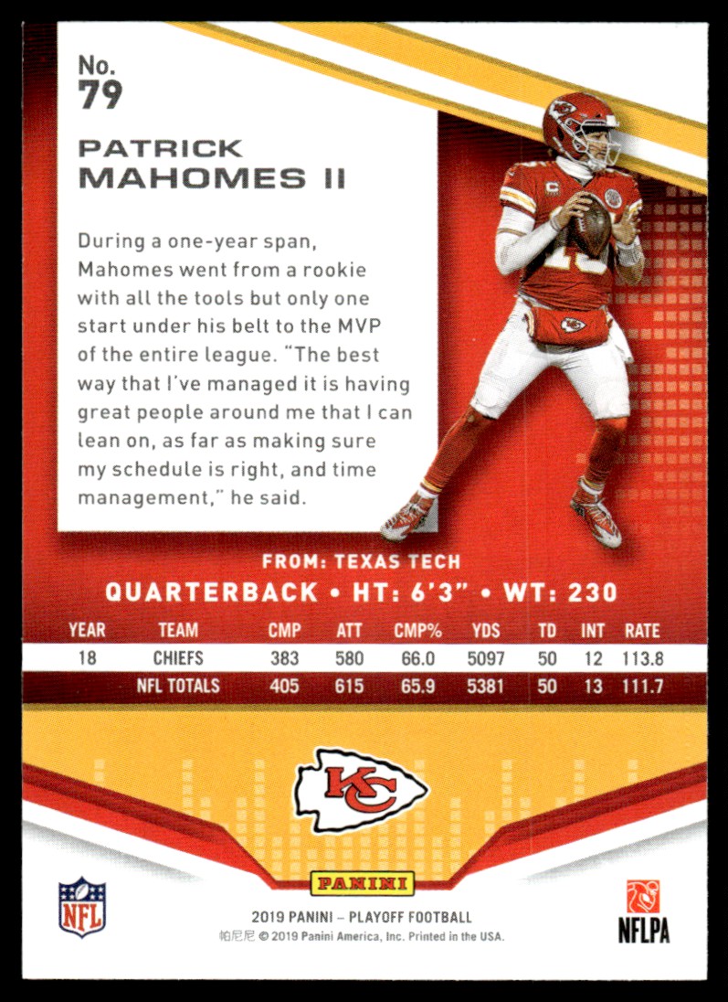 | 2019 Panini Playoff Patrick Mahomes II Kansas City Chiefs #79 |