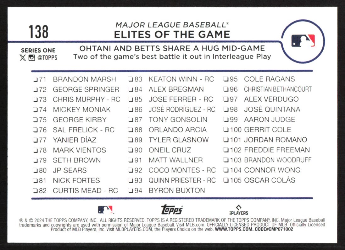 | 2024 Topps Mookie Betts Major League Baseball #138 |