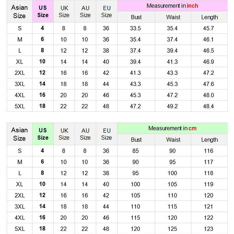 Item Sizes: 2XL, Bust: 105cm, Waist: 110cm, Length: 120cm