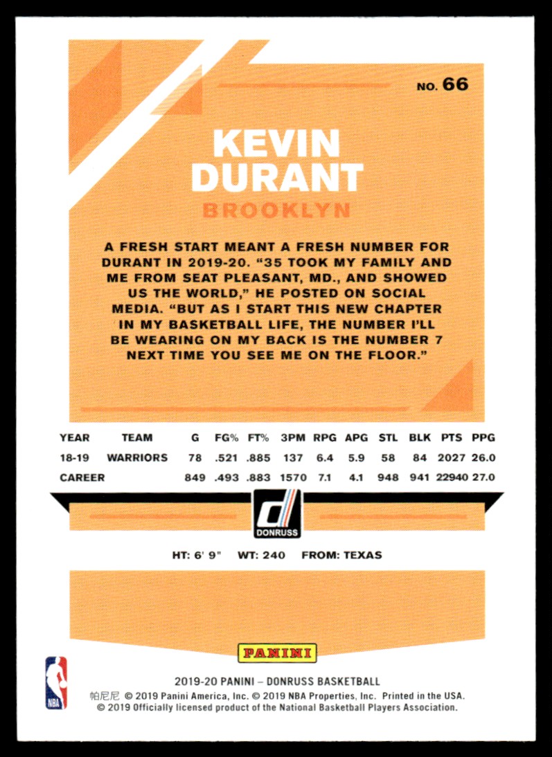 | 2019-20 Donruss Kevin Durant Brooklyn Nets #66 |