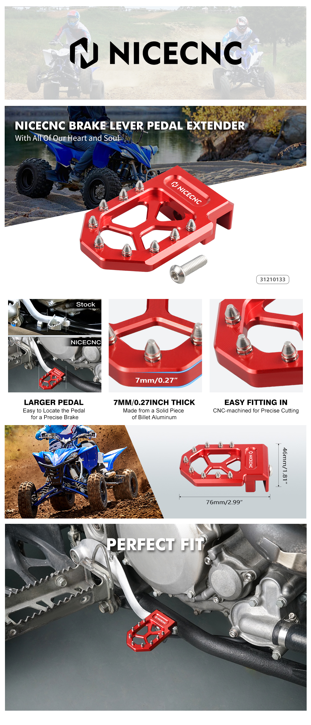 【Enlarged Pedal】Features tread area much larger than the stock for utmost comfort. Easy for you to locate the pedal for a precise brake.