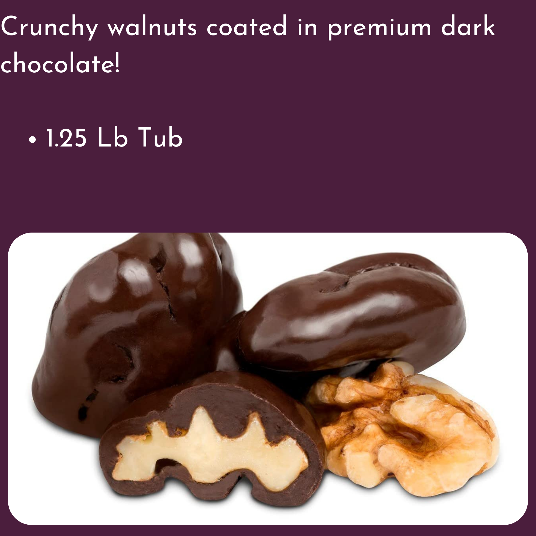 Ingredients: Dark Chocolate (sugar, chocolate liquor [processed with alkali], cocoa butter, milkfat, soy lecithin [an emulsifier], vanilla, and vanillin [an artificial flavor]), Walnuts, Confectioner's Glaze.