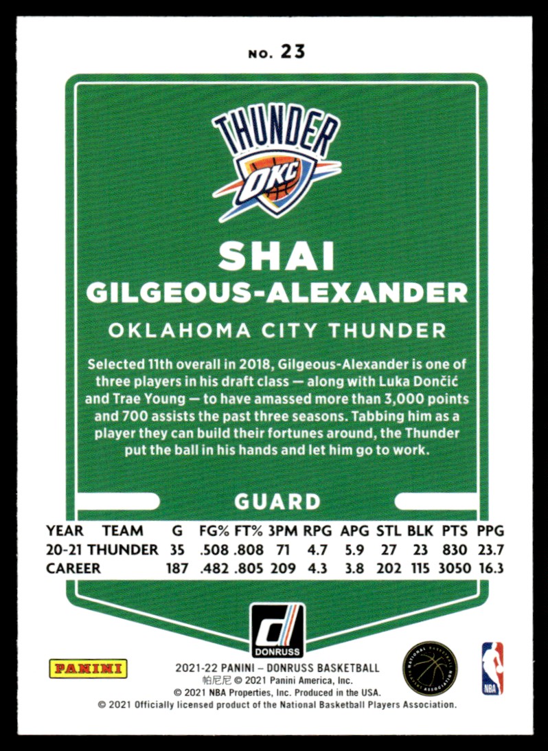 | 2021-22 Donruss Shai Gilgeous-Alexander Oklahoma City Thunder #23 |