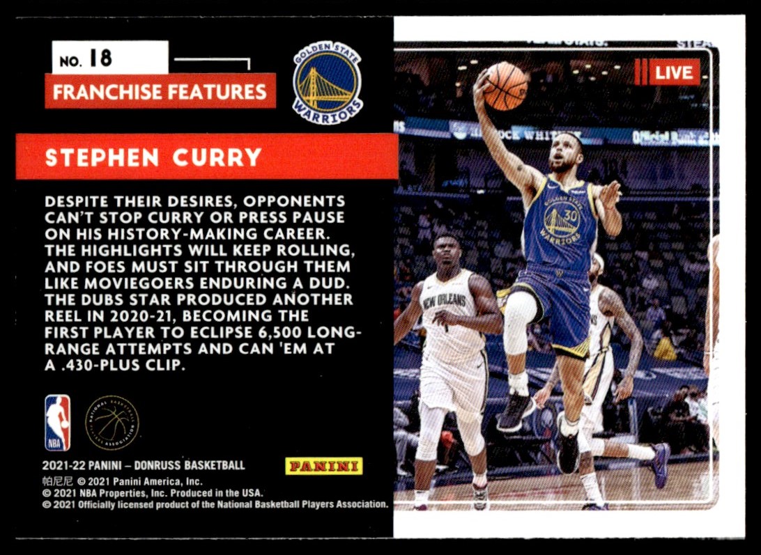 | 2021-22 Donruss Franchise Features Stephen Curry Golden State Warriors #18 |