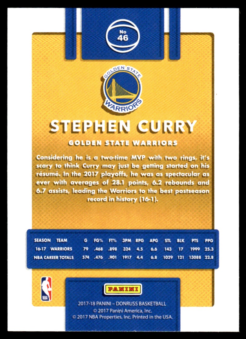 | 2017-18 Donruss Stephen Curry Golden State Warriors #46 |