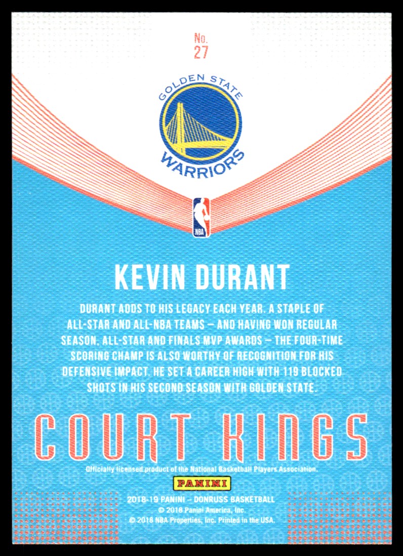 | 2018-19 Donruss Court Kings Kevin Durant Golden State Warriors #27 Insert |