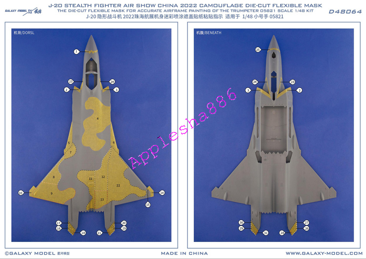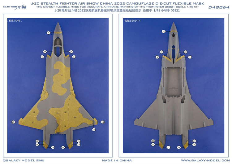 Galaxy D48064 J-20 STEALTH FIGHTER AIR SHOW CHINA 2022 CAMOUFLAGE DIE-CUT MASK