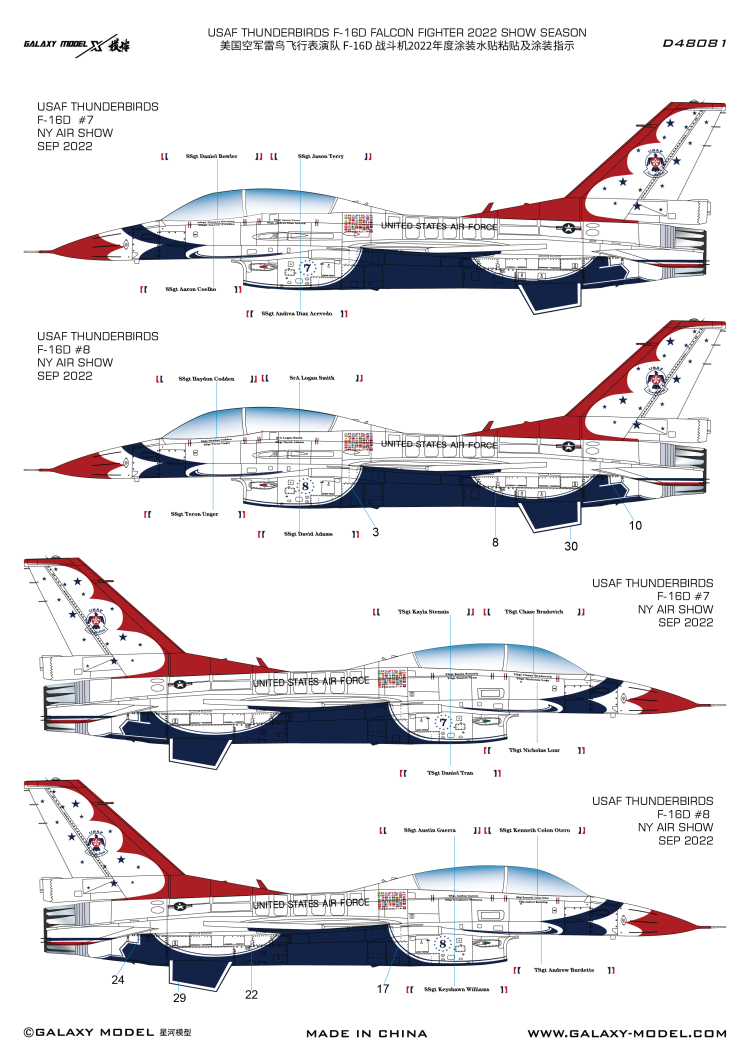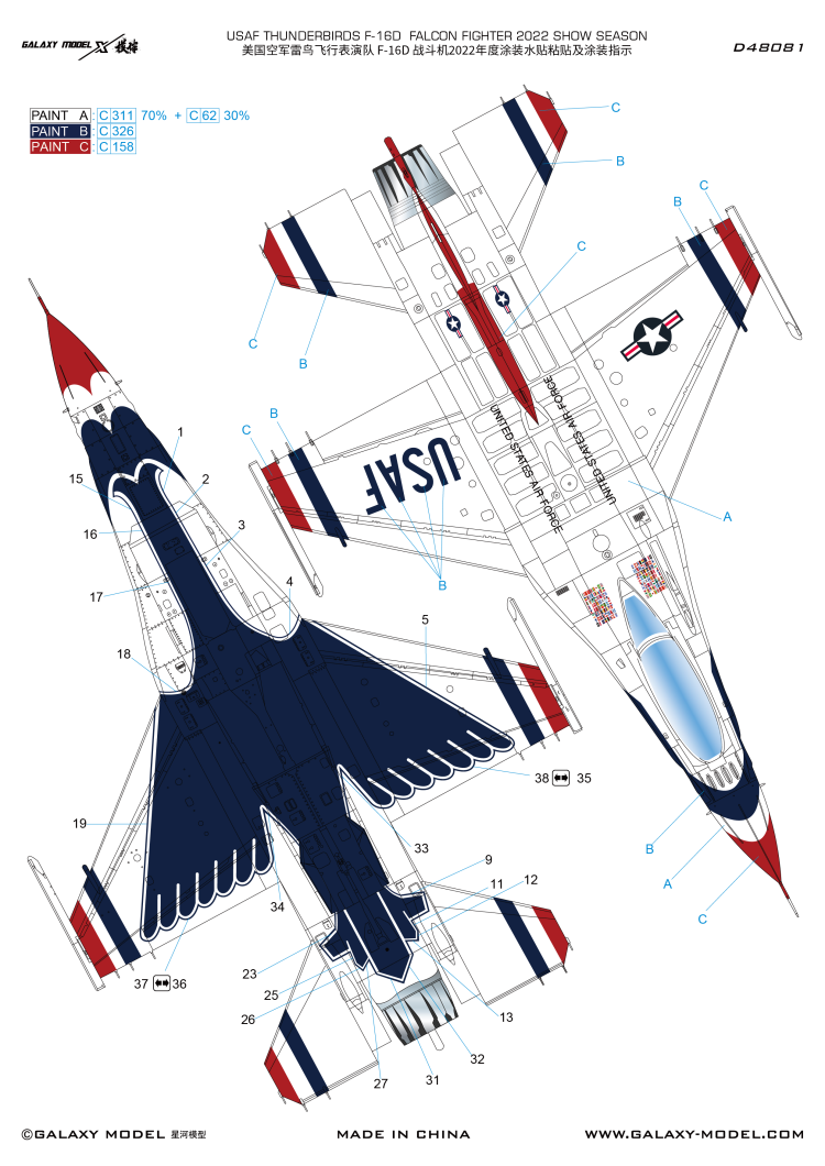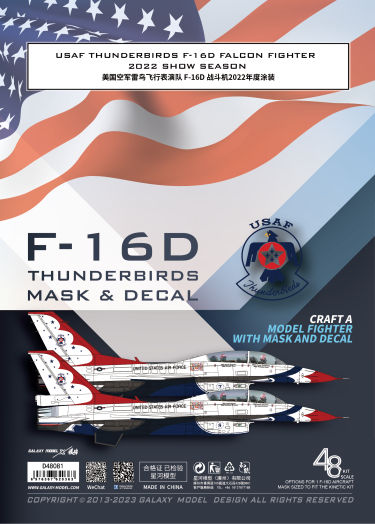 Galaxy D48081 USAF Thunderbirds F-16D Falcon Fighter COLOR SEPARATION DIE-CUT
