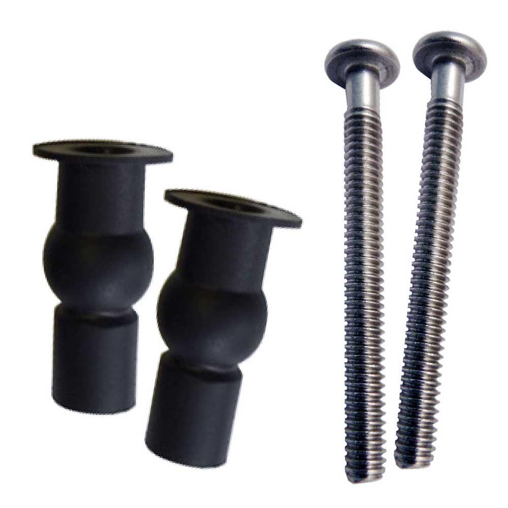 Expanding grommets for top fixing toilet seats. A set of two rubber well nuts and two screws for top fixing toilet seats in black colour. Nuts lengths are 53mm, nuts sizes are M6.