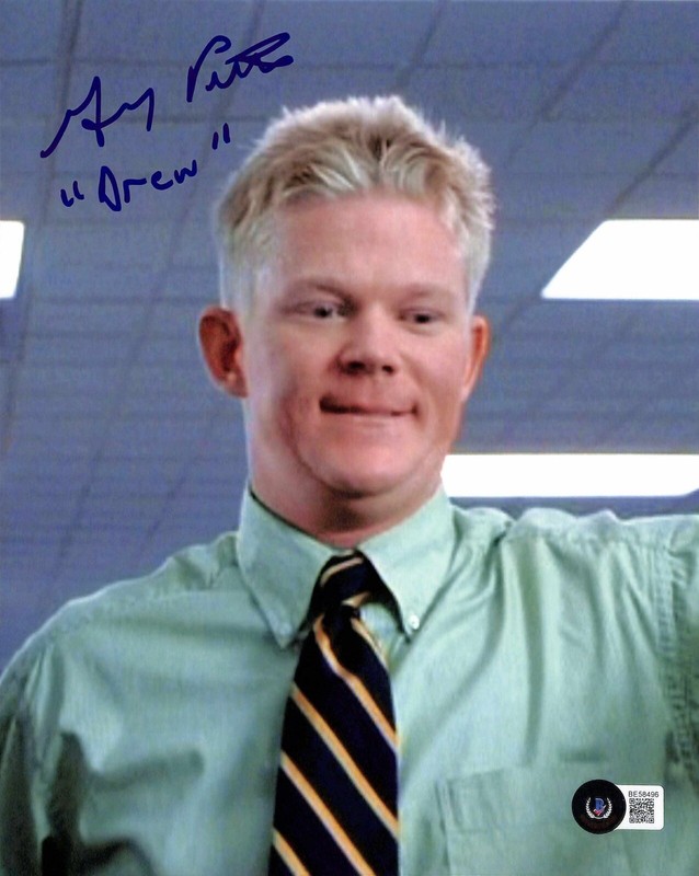 Autographed 8x10 photograph signed in blue permanent marker by actor Greg Pitts who played “Drew” in the movie Office Space. Inscribed “Drew”. From the Steve Grad Autograph Collection and obtained in person by Steve Grad in 2006 at his apartment in Santa Monica, CA. The autograph is certified by Beckett Authentication services. Certification #BE58496.