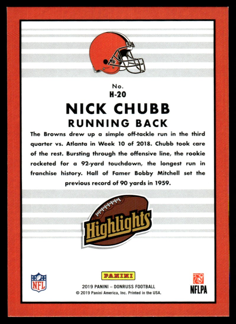 | 2019 Donruss Highlights Nick Chubb Cleveland Browns #H-20 Insert |