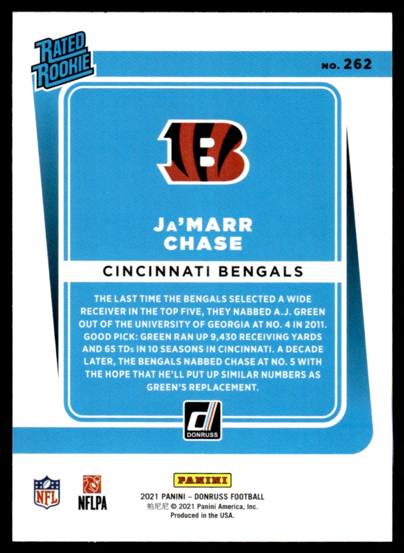 | 2021 Donruss Rated Rookie Ja'Marr Chase Rookie Cincinnati Bengals #262 |
