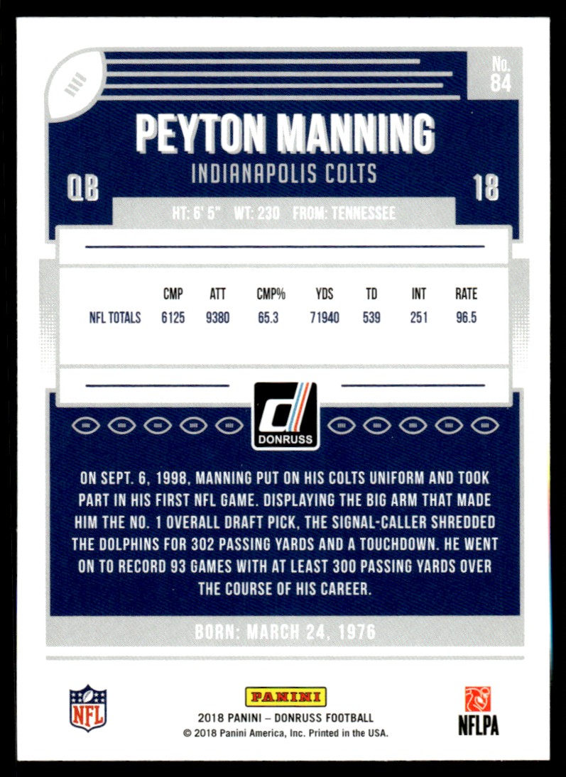 | 2018 Donruss Peyton Manning Indianapolis Colts #84 |