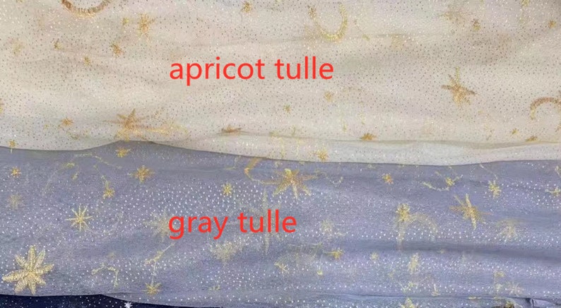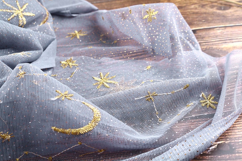 Elegant tulle fabric, beautiful star pattern,embroidered lace fabric. The material of this lace fabric is fresh and high quality. Suitable for wedding dress, evening dress, illusion gowns, couture design, star prom dress, summer dress and variety of handmade.