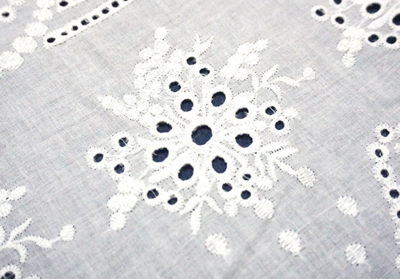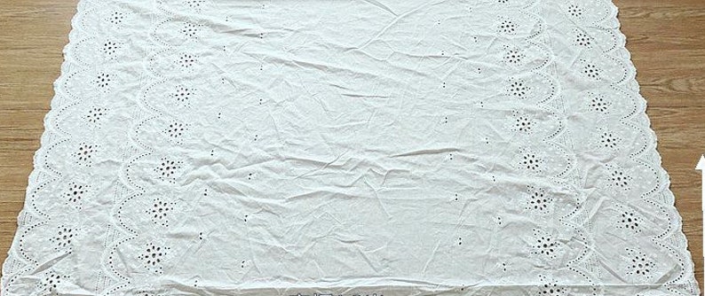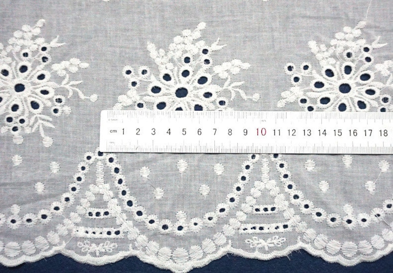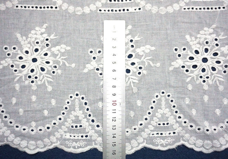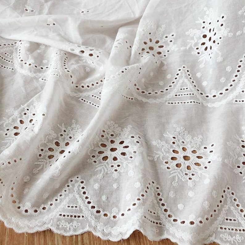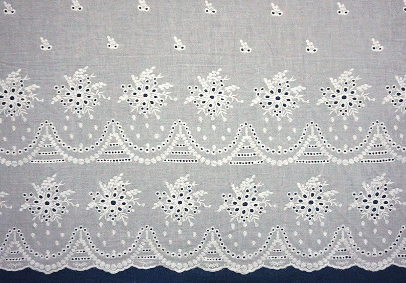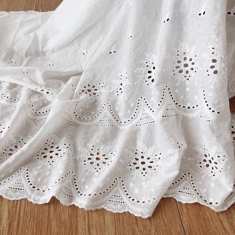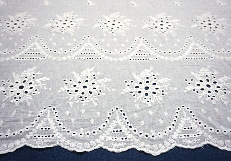 Exquisite Cotton eyelet fabric, off white color, Double scallop borders fabric, embroidery flowers lace fabric, bridal lace, doll dress, girl dress