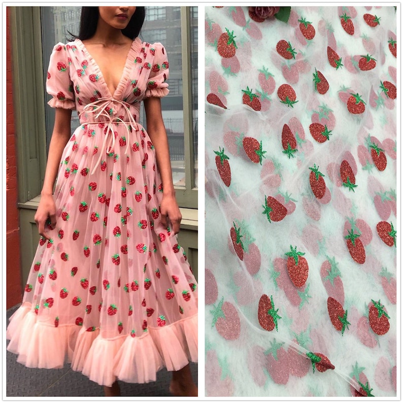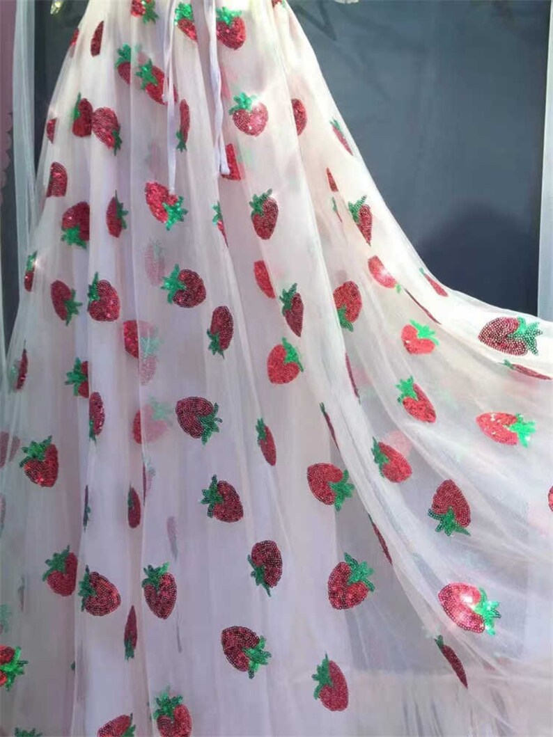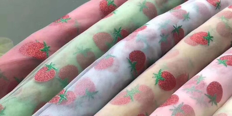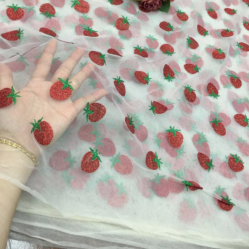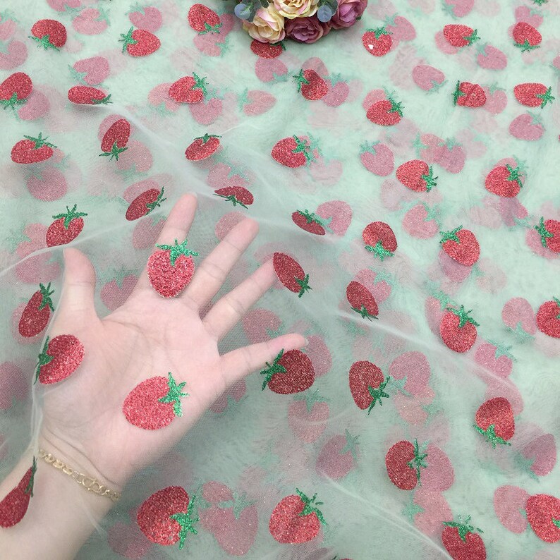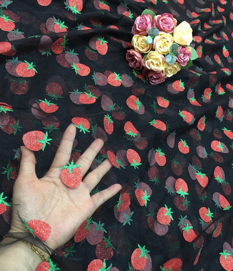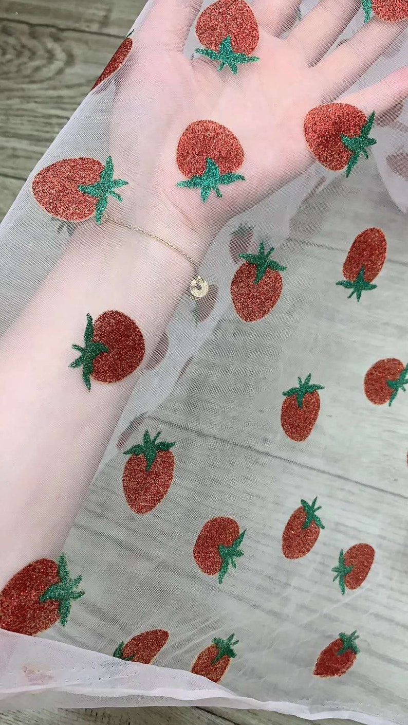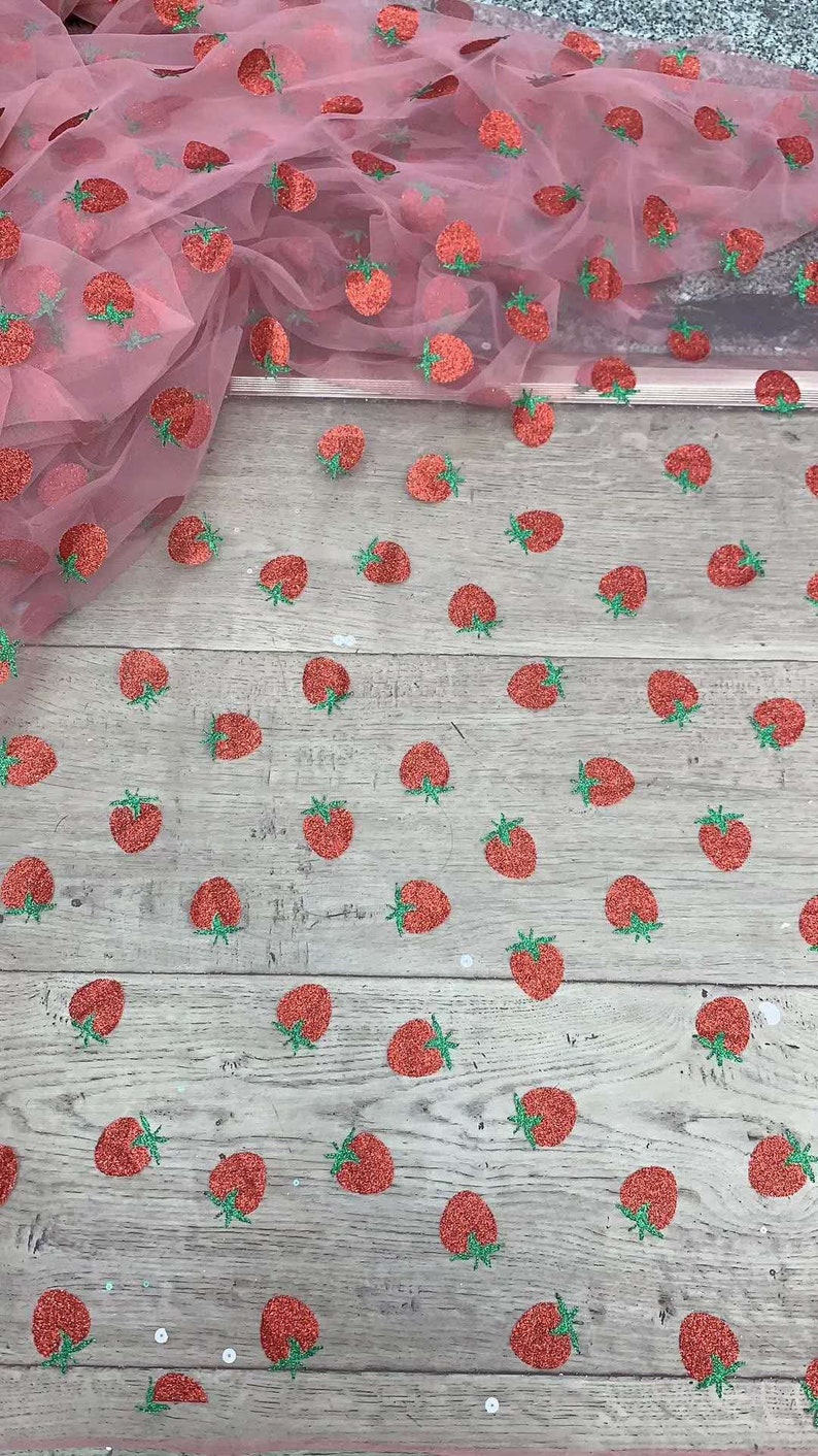 Soft Tulle Lace Fabric with glitter Strawberry, please kindly note it may fall off.