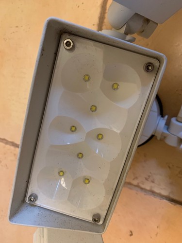 Up for sale used but in good condition super heavy-dute LED flood / security outdoor light. It's used and a little dirty, but overwise it's in great condition and 100% functional. I've got it from Lowes and it was something around $150 at that time. The light is made out of metal and powder coated. Has LED, not sure about lumen output but it's super bright. The motion detection head is the most advanced I have ever seen, has lots of settings and TWO motion detection head for better coverage! Front LEDs are covered with glass. This is a highest quality security light I've ever seen. I've upgraded my light around the house to a newer model and don't this one any longer, up for grabs. See photos of the actual item for sale, what you see is what you get. Feel free to ask any questions and thank you for looking!