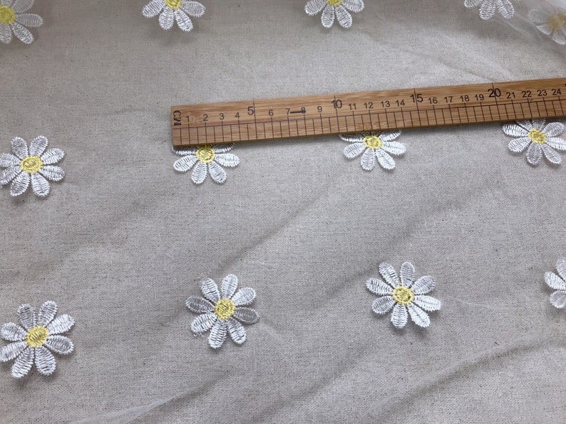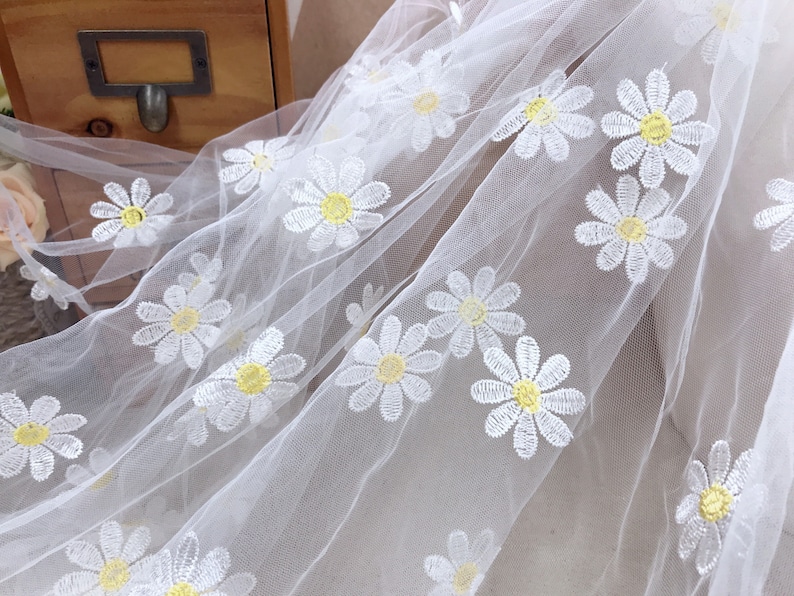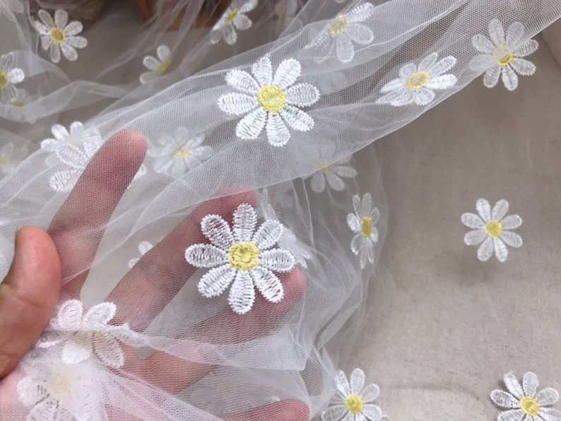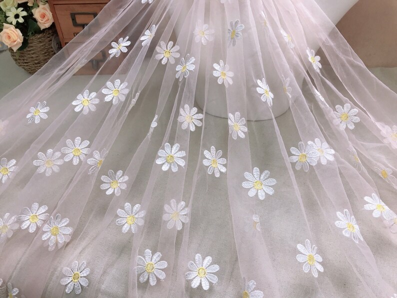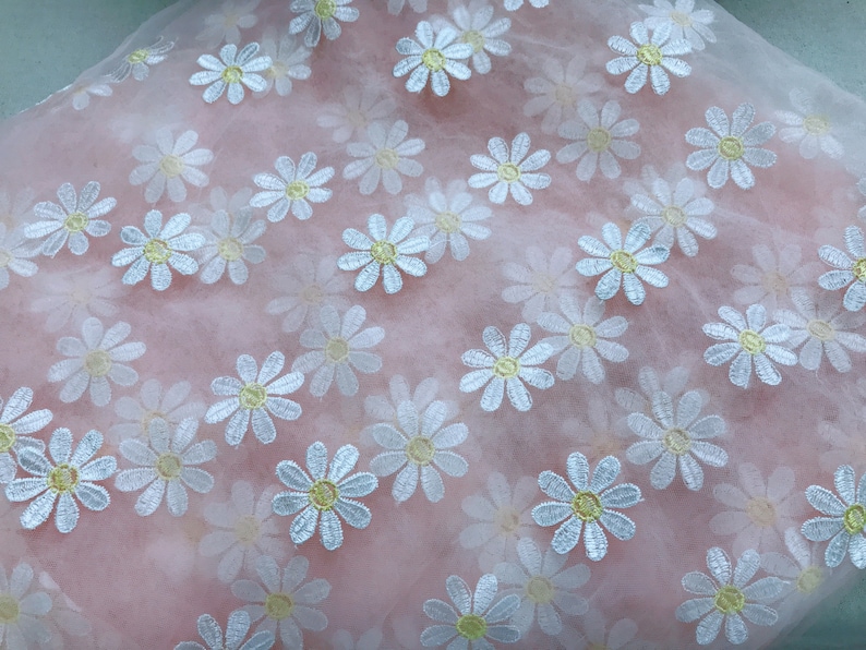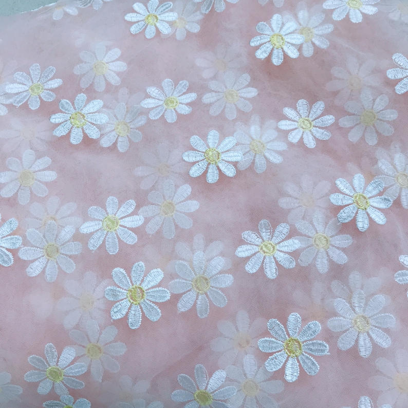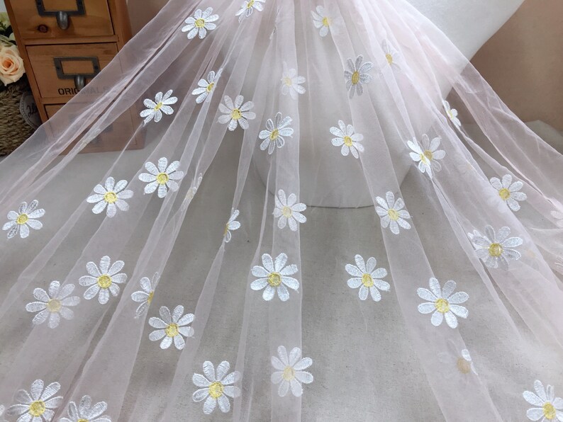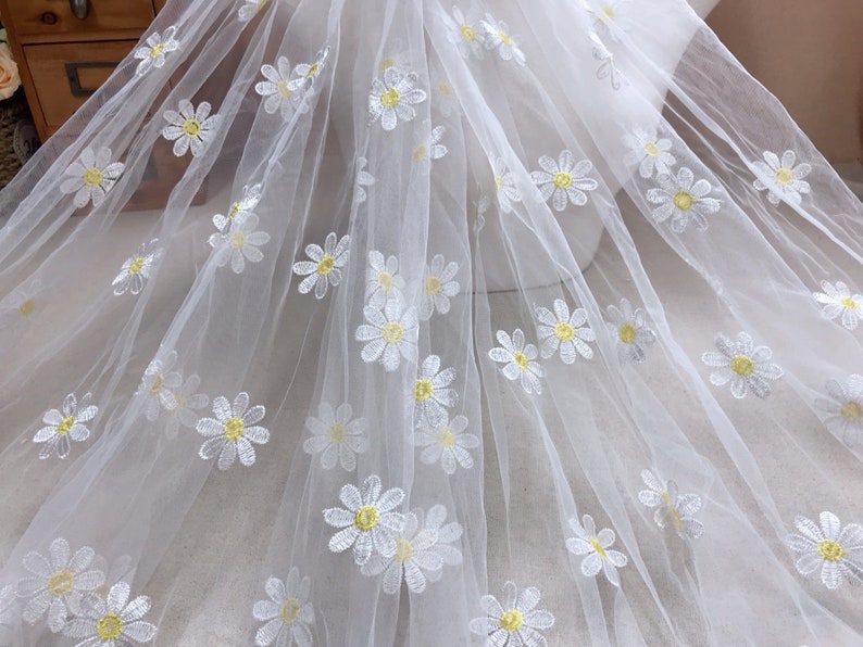 Daisy Flower embroidered lace fabric for dress making, wedding gown, tutu dress, bodice or curtains.