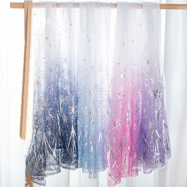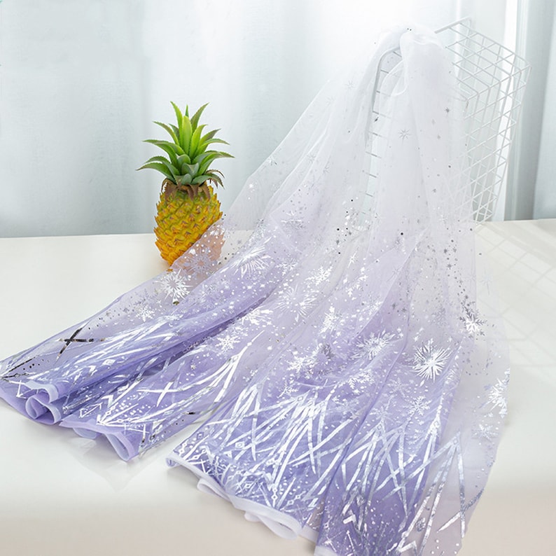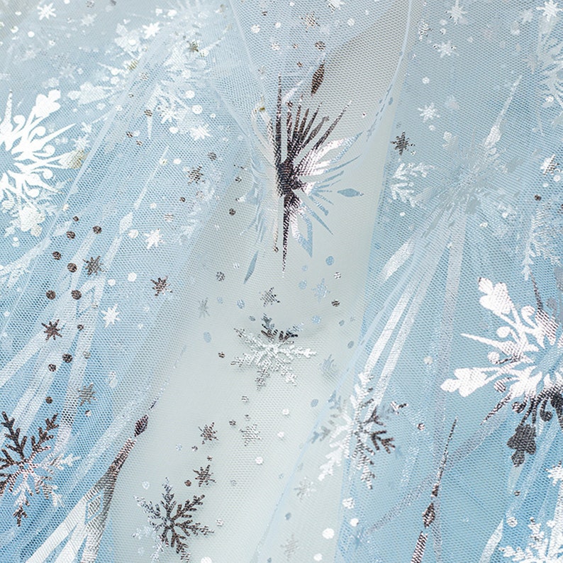 Frozen Print Snowflake Tulle Lace Fabric, Silver Snowflake Lace Fabric for Tutu Dress, Headband, Girl Dress, Cosplay, Backdrop