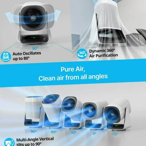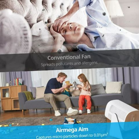 Coway Airmega Aim 2 in 1 Air Purifier with Fan Purifies Air in Multiple Angles. Let it do all the work. Enjoy around-the-clock air quality monitoring and optimized purification. Auto-adjustments are based on the level of air quality of conserve energy and preserve crisp, clean air in real time. Experience efficient air purification with auto mode and adaptive airflow speed. By aiming downwards, pet hair and micro particles are lifted up, making it easier to be pulled in and get purified. Deodorization filter removes bad odor constantly.