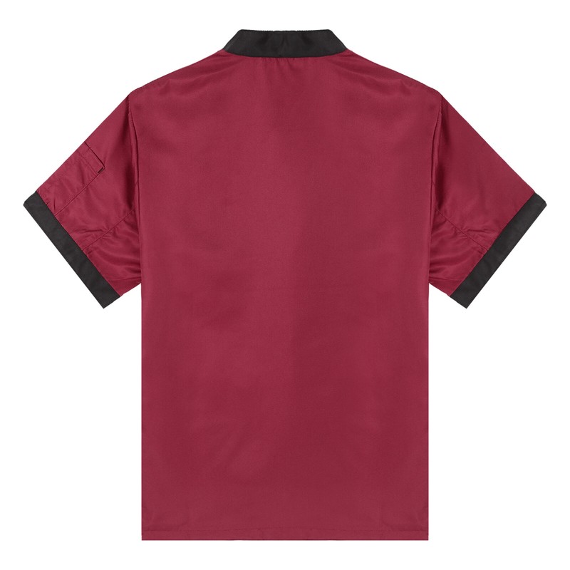 Unisex short sleeve chef coat, cross-over collar, contrast color details, the upper back is designed with breathable mesh patchwork panel.