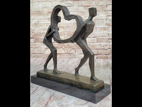 This exquisite bronze sculpture captures the essence of love and togetherness with its depiction of an elegant and slender abstract couple. Standing in perfect symmetry, they hold a heart outline between them, symbolizing the depth of their connection. Crafted using the lost wax method, this sculpture is a testament to the artistry and skill involved in its creation.
