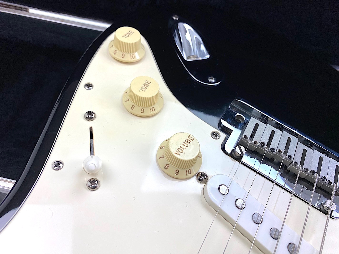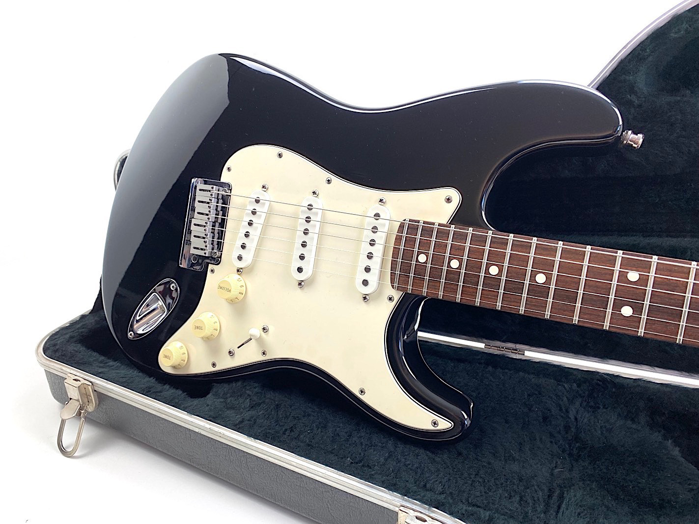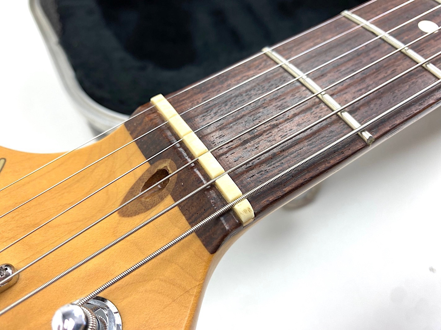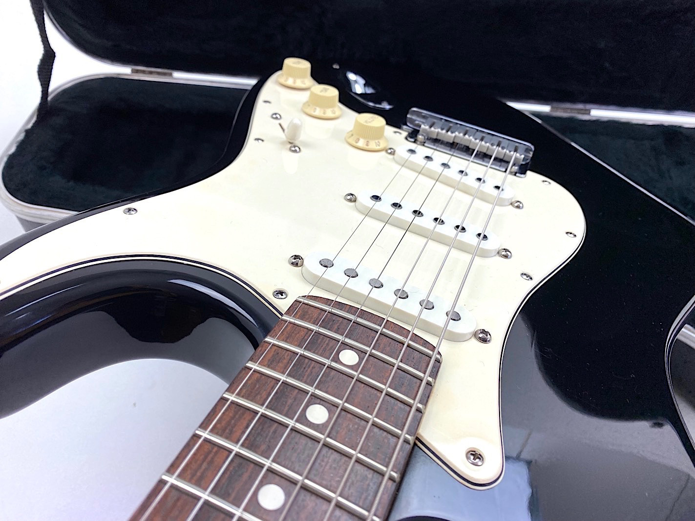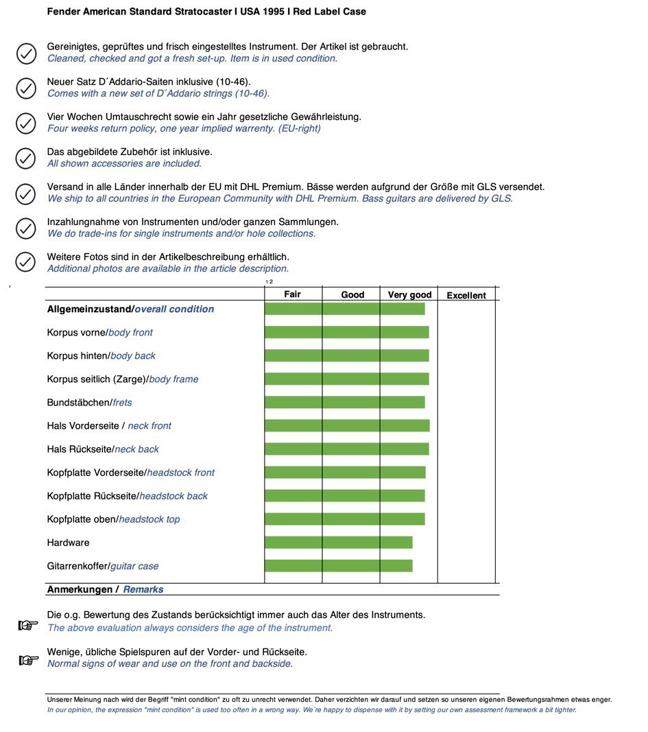 Sie kaufen exakt die auf den zahlreichen Bildern abgebildete gebrauchte Gitarre mit dem ebenso gezeigten Zubehör. Die altersbedingten Gebrauchsspuren gehen hieraus i.d.R. gut hervor. Eine kurze Zustandsbeschreibung finden Sie auf dem ersten Foto dieser Anzeige.