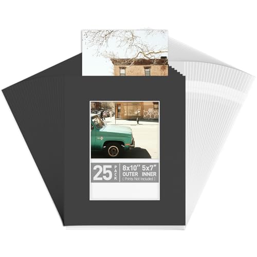 Pack of 25 8x10 Mats for 5x7 Photo with Backing Board, Includes 25 Clear Bags