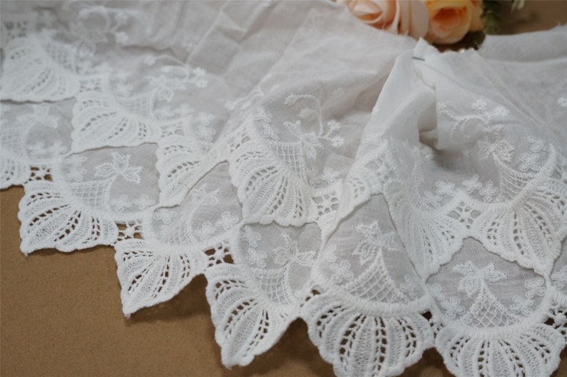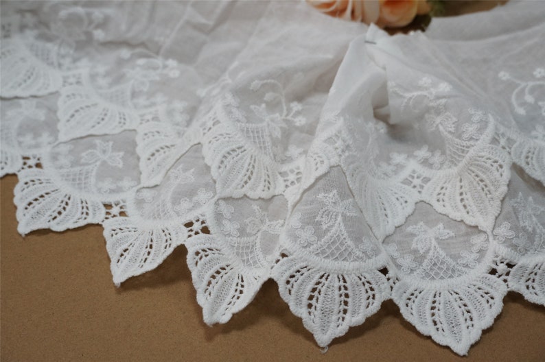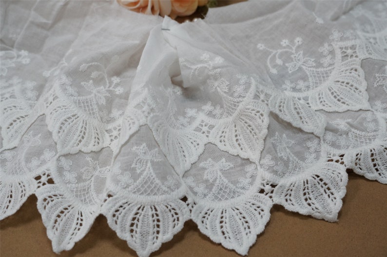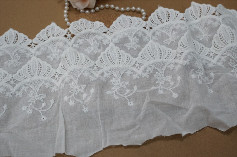7.3 wide eyelet edge embroidery cotton lace trim.