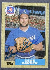 Up for bids is a 2 1/2" wide by 3 1/2" long 1987 Topps Baseball card # 351 that has been signed / autographed by Atlanta Braves star Gene Garber-The card features a great image of Garber in uniform and features a large blue ink signature signed on front-The card has only light wear and the signature is strong- A nice item with a 100% authentic signature. Postage on this item is $ 4.95.