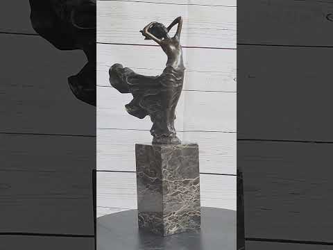 Behold the captivating beauty of our bronze statue, depicting a mesmerizing dancer who moves with the grace of rolling waves. Radiating wildness and freedom, she exudes a boundless energy and an indomitable spirit. This stunning Gypsy performer enthralls onlookers with her classic belly dance, leaving them smitten by her enchanting presence. Her curvaceous body is a sight to behold, elegantly accentuated by her striking outfit. With her hair flowing freely, she leans back, gracefully combing her fingers through the untamed locks. The exquisite details of this sculpture showcase the artist's mastery, capturing the flair of her hair and the flowing lines of her dress. Handmade from 100% bronze, this sculpture features a captivating brown patina finish, preserving its timeless allure. It proudly bears the signature of the esteemed artist Milo, signifying its authenticity and exceptional craftsmanship.