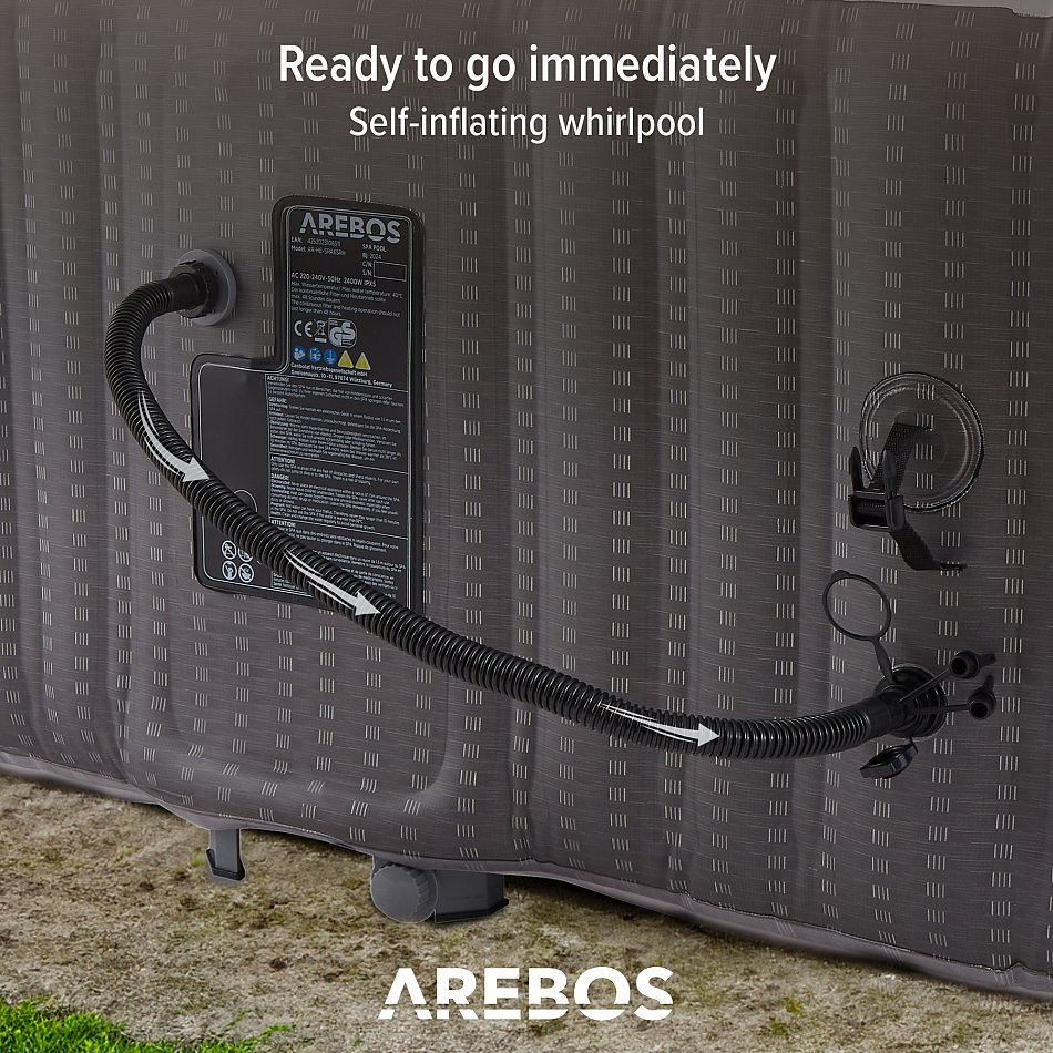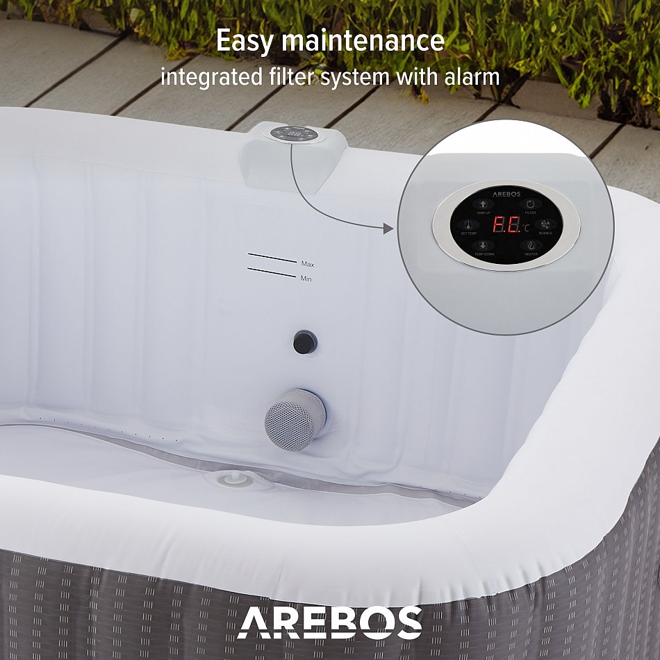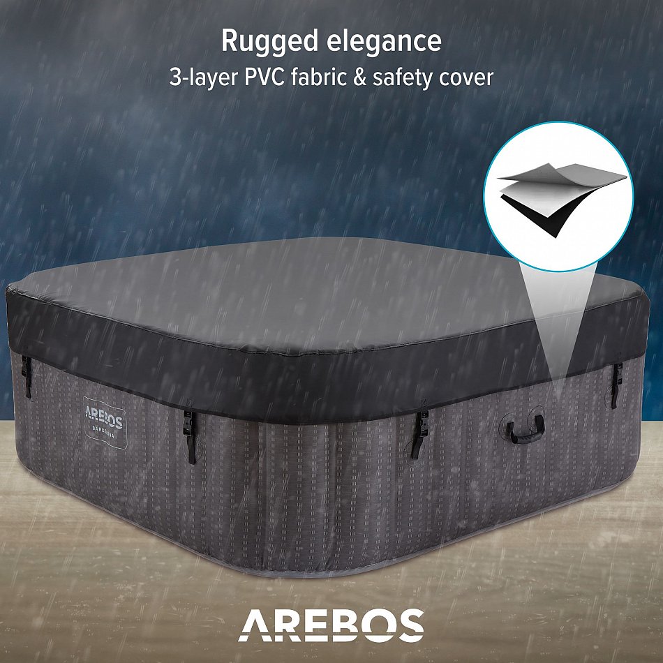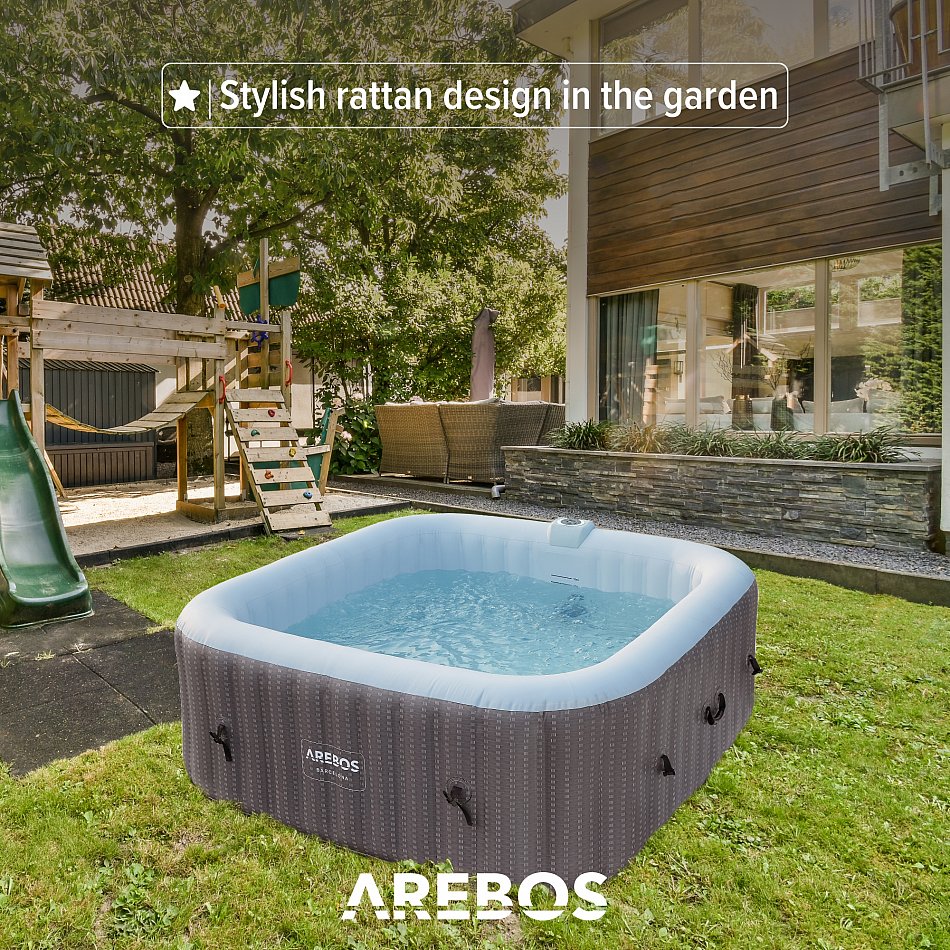 Tanto si desea refrescarse en un caluroso día de verano como disfrutar de un acogedor baño caliente en invierno, la bañera de hidromasaje hinchable de AREBOS le garantiza una relajante experiencia de masaje al aire libre.