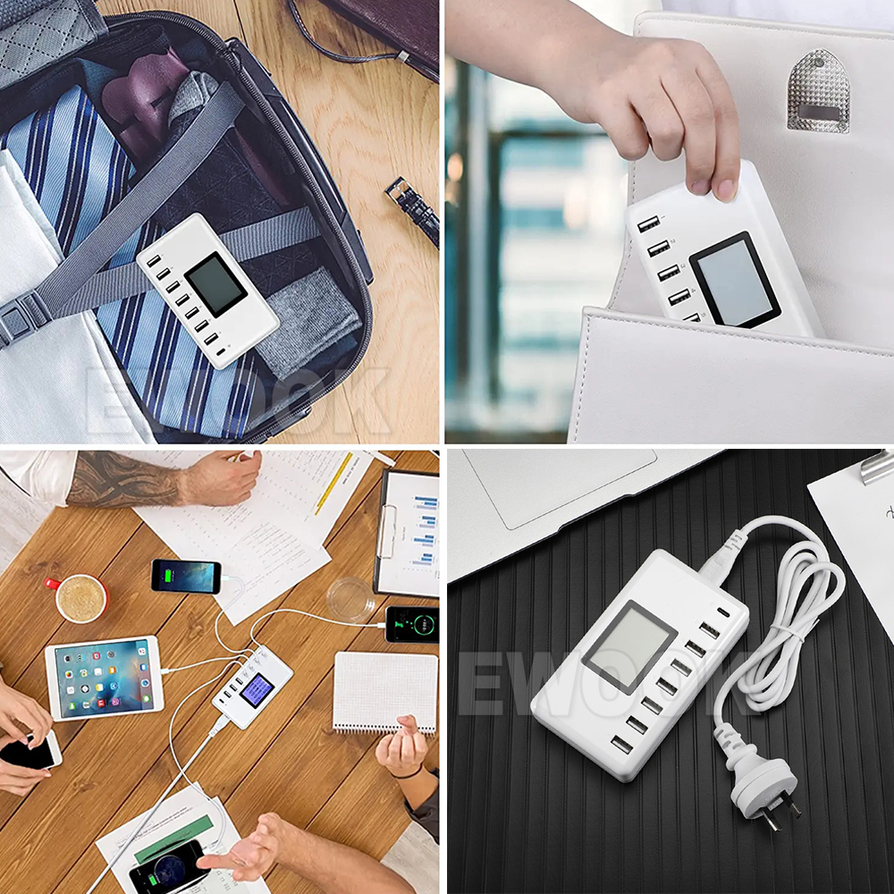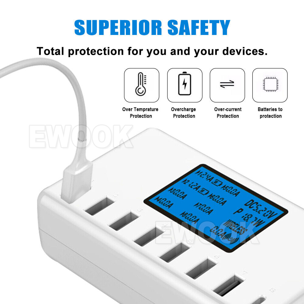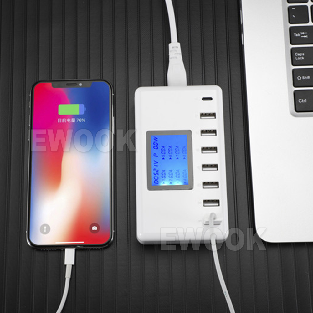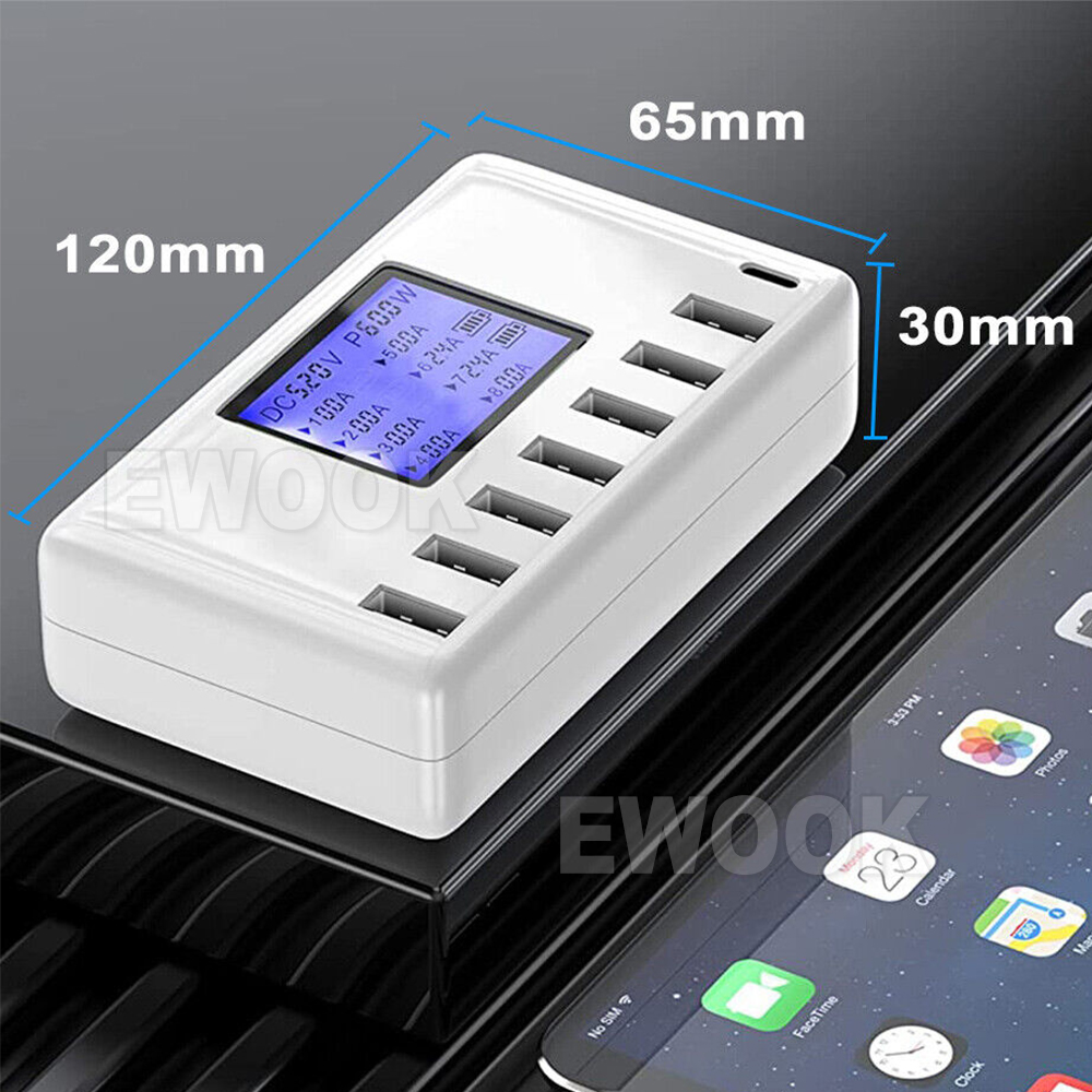 - Features: - Ideal for home, office, travel and other indoor uses - 7 USB ports with various output capacity and 1 type c port to meet your needs - Compatible with all smartphones like for iphone Samsung Xiaomi Huawei LG ZTE Lenovo HTC Sony Google and tablet PC Camera MP3 MP4 Player PSP with USB port,and type c port for Macbook. Charge up to 4devices at the same time. - 0.8M wire Comes with led display screen to show charging status clearly,comes with a smart LED screen to check the status - Compact design,small size and light weight automatical current matching,more protection - Specifications: - Input Voltage: AC 100-240V 50-60Hz - Output :5V/2.4A(Max) - Output power : 5V/8A 40W(Max) - Type C Out: DC 5V/2.4A(Max) - Color: White - Plug standard: AU Plug - Material: ABS + PC - Pay By 1pm, Have your item dispatched today. - 12 Months Warranty. - Sydney local Stock, Fast deliver!