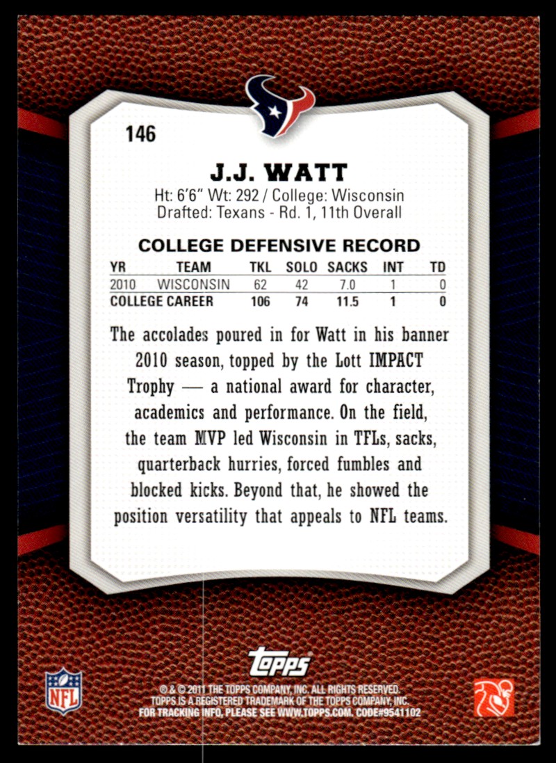 2011 Topps RR J.J. Watt Rookie Houston Texans #146
