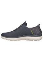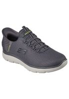 Ultimativer Tragekomfort mit Skechers Hands Free Slip-ins: Summits - High Range. Zusammen mit unserem exklusiven Heel Pillow, das Ihren Fuß sicher an Ort und Stelle hält, verfügt dieser vegane Schuh über das einzigartig geformtes Pop-up-geformtes Fersenpanel der Skechers Slip-ins, ein Obermaterial aus Mesh mit fixierten Schnürsenkeln und eine gepolsterte Innensohle aus Skechers Air-Cooled Memory Foam.