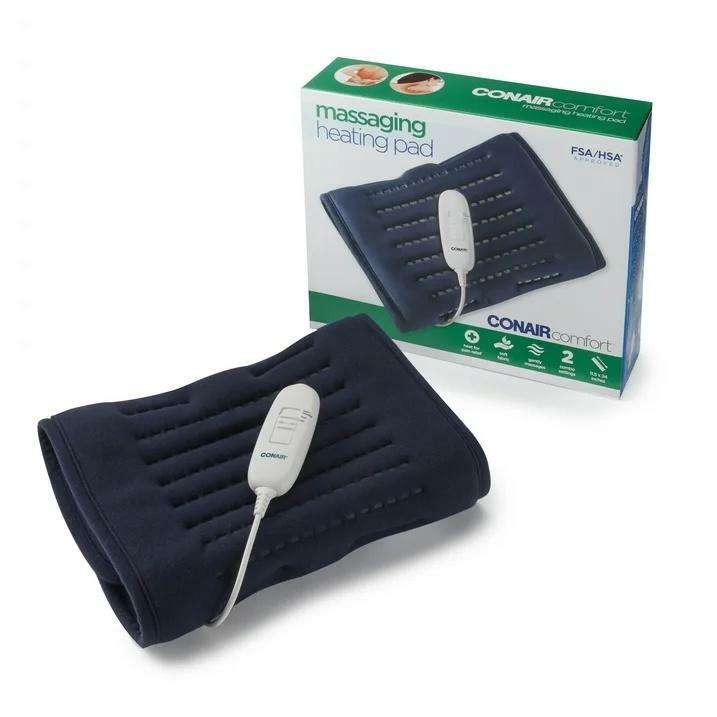 <h3>Product details</h3><p> </p><p><strong>Massaging heating pad, Light, soothing vibrations gently massage away aches and pains. Say goodbye to aches and hello to sweet relief! The ConairComfort™ Massaging Heating Pad delivers soothing comfort to nagging muscle pains with a combination of five heat and vibration settings that target discomfort right at the source. Wrap the extra-large pad across your back, lay it over your lap, or isolate a leg, arm, or shoulder by securing the pad with the attached straps, then set the heat and massage level with the easy-to-use control. The ultra-soft cushioned pad is oversized at 11.5" x 24" and provides plenty of coverage for multiple muscle groups or is ideal for wrapping around your shoulders or laying across your lap to help release pain and tension from sore muscles. Or simply enjoy it as a heated throw! For healing comfort, select a custom setting on the handheld control. The ergonomic control fits comfortably in hand and has easy-to-navigate buttons you can reach with your thumb. Use the heat or massage functions on their own or combine them to create one of five soothing low- or high-pressure massages — heat, low massage, high massage, heated low massage, or heated high massage. With light, soothing vibrations and gentle, penetrating heat, the ConairComfort™ Massaging Heating Pad helps ease aches and pains so you can get back to feeling your best.</strong></p><ul><li>Soothing Heat and Relaxing Massage: Use all natural heat to relieve sore muscles and massage away everyday aches and pains. Soft fabric cover provides extra comfort while in us</li><li>King Size Heating Pad: The ConairComfort™ Massaging Heating Pad, measures 11.5” x 24” and is extra-large to accommodate multiple muscle groups at the same time</li><li>2 Setting Combinations: Completely customizable heat and massaging settings will tailor to your specific needs</li><li>Ergonomic Remote Control: Ergonomically designed hand held remote has custom controls to activate heat and massage settings. Comes with adjustable straps to secure the pad in place during use</li><li>Heat Therapy for Soothing Relief: Heat is a well-known natural method to relieve the discomfort of body aches and pains. When applied to the source of pain, the heating pad penetrates heat deep into the muscle tissue helping you ease into recovery</li></ul>