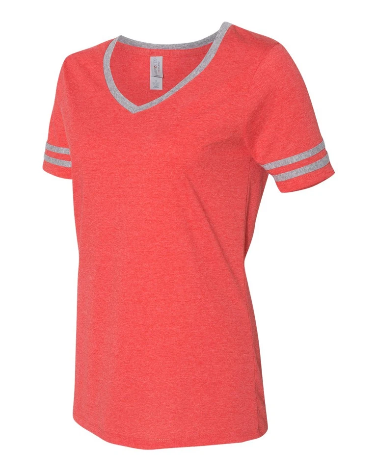 Jerzees Triblend Women's V-Neck Varsity T-Shirt - Fiery Red Heather/Oxford - Large