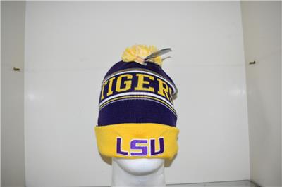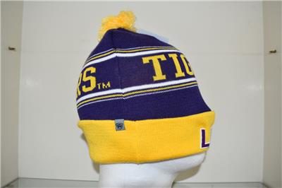 LSU Tigers Fashion Knit Mens Beanie Top of World Hat Cap Pom NWT